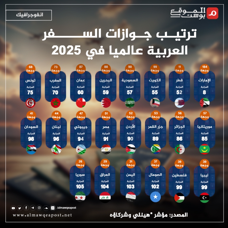 ترتيب الدول العربية من حيث قوة جواز السفر وعدد الوجهات في 2025